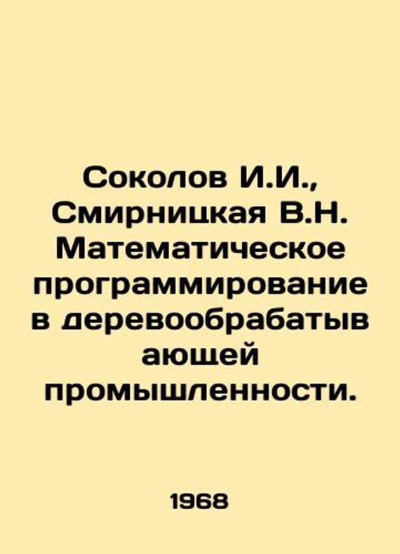 Sokolov I.I., Smirnitskaya V.N. Mathematical programming in the wood processing industry. In Russian /Sokolov I.I., Smirnitskaya V.N. Matematicheskoe programmirovanie v derevoobrabatyvayushchey promyshlennosti. M Forestry 1968. We have thousands of titles and often several copies of each title may be available. Please feel free to contact us for a detailed description of the copies available. SKUalb6af41af235c1b945.