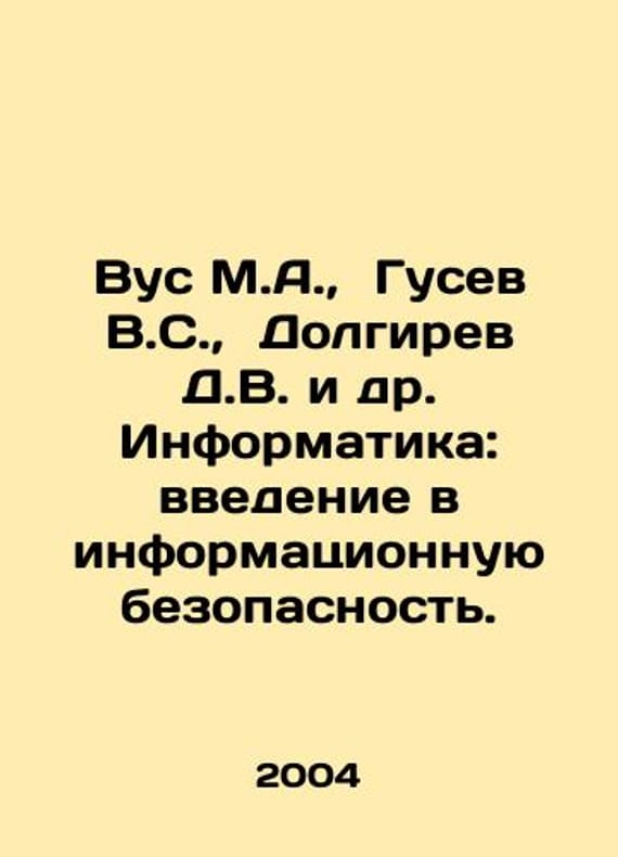 Vus M.A., Gusev V.S., Dolgirev D.V. et al. Informatics: an introduction to information security. In Russian /Vus M.A., Gusev V.S., Dolgirev D.V. i dr. Informatika: vvedenie v informatsionnuyu bezopasnost. Under the general editorship of M.A. Vus. Educational manual for higher education institutions. Presented by R.M. Yusupov and A.V. Fedotov. Series: Textbooks and teaching aids. St. Petersburg Publishing House R. Aslanov - Legal Center Press 2004. We have thousands of titles and often several copies of each title may be available. Please feel free to contact us for a detailed description of the copies available. SKUalb6b05913615f733b6.