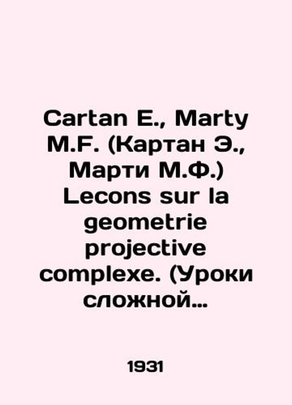 Cartan E., Marty M.F. Lecons sur la geometrie projective complex. (Lessons from complex projection geometry) In Russian /Cartan E., Marty M.F. (Kartan E., Marti M.F.) Lecons sur la geometrie projective complexe. (Uroki slozhnoy proektivnoy geometrii) In French: Paris Gauthier-villars et c., editeurs 1931. 760g. We have thousands of titles and often several copies of each title may be available. Please feel free to contact us for a detailed description of the copies available. SKUalb6b572099668199b2.