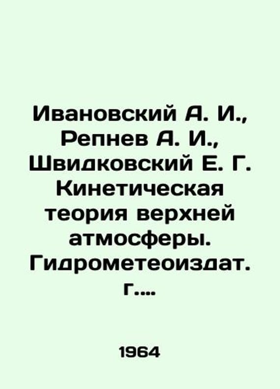 Ivanovsky A. I., Repnev A. I., Shvidkovsky E. G. Kinetic theory of the upper atmosphere. Hydrometeorological publication. 258 p. In Russian /Ivanovskiy A. I., Repnev A. I., Shvidkovskiy E. G. Kineticheskaya teoriya verkhney atmosfery. Gidrometeoizdat. g. 258 s. L. Central Aerological Observatory. 1964. 297 p. We have thousands of titles and often several copies of each title may be available. Please feel free to contact us for a detailed description of the copies available. SKUalb6bbe07b8a8786630.