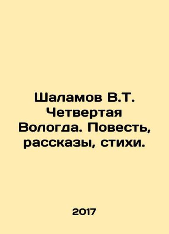 Shalamov V.T. The Fourth Vologda. Tale, Stories, Poems. In Russian /Shalamov V.T. Chetvertaya Vologda. Povest, rasskazy, stikhi. Introduction to the article, comment by V. V. Yesipov. Vologda of the Ancient North 2017. 271s. We have thousands of titles and often several copies of each title may be available. Please feel free to contact us for a detailed description of the copies available. SKUalb6bca1c1f88467d09.