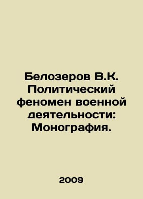 Belozerov V.K. The Political Phenomenon of Military Activities: Monograph. In Russian /Belozerov V.K. Politicheskiy fenomen voennoy deyatelnosti: Monografiya. ( Association of Military Political Scientists. M. ATISSO Publishing House, 2009, 392 p.). We have thousands of titles and often several copies of each title may be available. Please feel free to contact us for a detailed description of the copies available. SKUalb6bfd4a04687c8a3f.