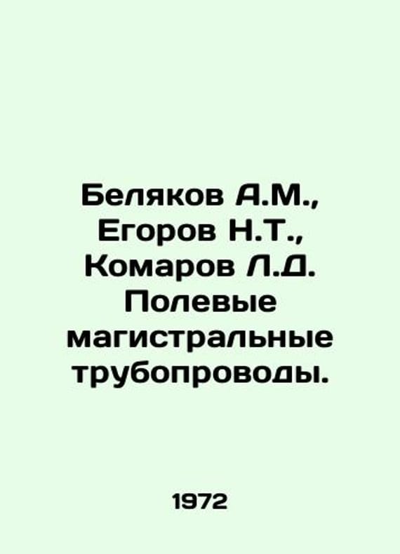 A.M. Belyakov, N.T. Egorov, L.D. Komarov Field Main Pipelines. In Russian /Belyakov A.M., Egorov N.T., Komarov L.D. Polevye magistralnye truboprovody. Textbook. M. Military Publishing House, 1972. 288s. We have thousands of titles and often several copies of each title may be available. Please feel free to contact us for a detailed description of the copies available. SKUalb6c0a6b5d585fd784.