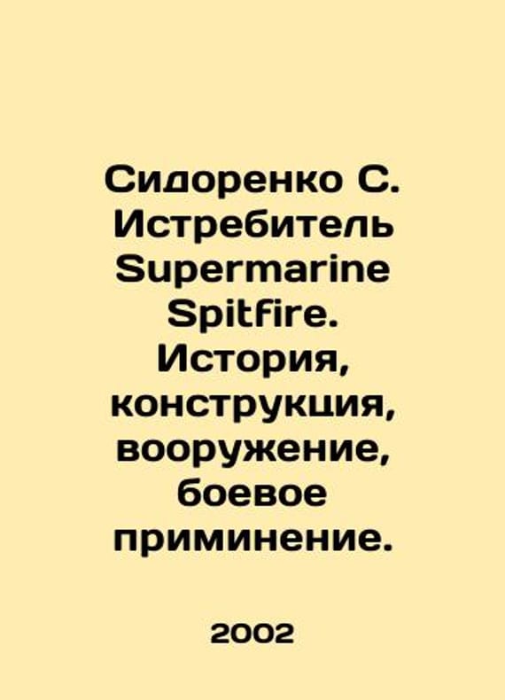 Sidorenko S. Fighter Supermarine Spitfire. History, design, armaments, combat primitive. In Russian /Sidorenko S. Istrebitel Supermarine Spitfire. Istoriya, konstruktsiya, vooruzhenie, boevoe priminenie. M. ACT 2002. We have thousands of titles and often several copies of each title may be available. Please feel free to contact us for a detailed description of the copies available. SKUalb6c5eb64612f66e87.