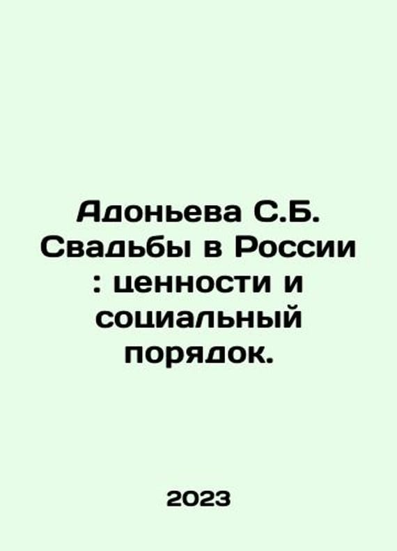 Adonyeva S.B. Weddings in Russia: Values and Social Order. In Russian /Adoneva S.B. Svadby v Rossii: tsennosti i sotsialnyy poryadok. St. Petersburg Proppov Center. 2023. 192 p. We have thousands of titles and often several copies of each title may be available. Please feel free to contact us for a detailed description of the copies available. SKUalb46ed4d00bc9acc21.