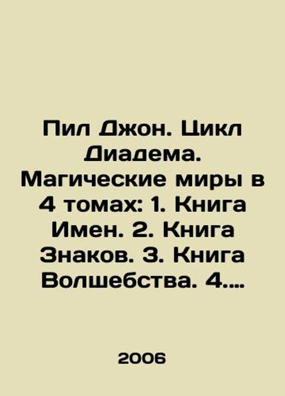 John Saw. Diadema Cycle. Magical worlds in 4 volumes: 1. Book of Names. 2. Book of Signs. 3. Book of Magic. 4. Book of Thunder. In Russian /Pil Dzhon. Tsikl Diadema. Magicheskie miry v 4 tomakh: 1. Kniga Imen. 2. Kniga Znakov. 3. Kniga Volshebstva. 4. Kniga Groma. They came to the world of Diademas sword and magic from different worlds. A street boy from modern New York, a warrior girl from the medieval Ordin, a young computer genius from the high-tech city of Kalomir. We have thousands of titles and often several copies of each title may be available. Please feel free to contact us for a detailed description of the copies available. SKUalb6c8d2e8baa291bf1.