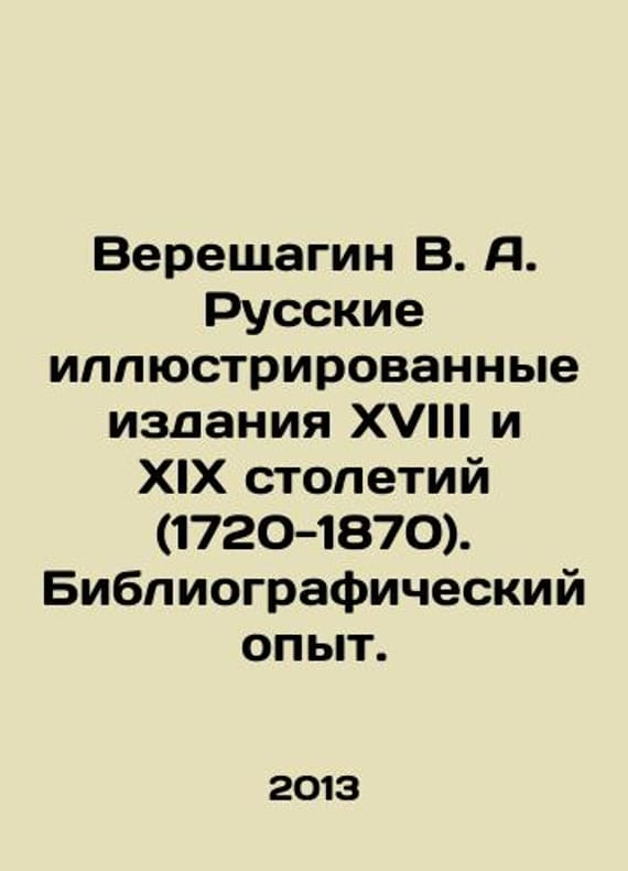 Vereshchagin V. A. Russian illustrated editions of the eighteenth and nineteenth centuries (1720-1870) In Russian /Vereshchagin V. A. Russkie illyustrirovannye izdaniya XVIII i XIX stoletiy (1720-1870). Bibliograficheskiy opyt. Tyre Room 5, Moscow Publishing House, V. Sekachev, 2013 348p. We have thousands of titles and often several copies of each title may be available. Please feel free to contact us for a detailed description of the copies available. SKUalb6cc6056cacb14c8c.
