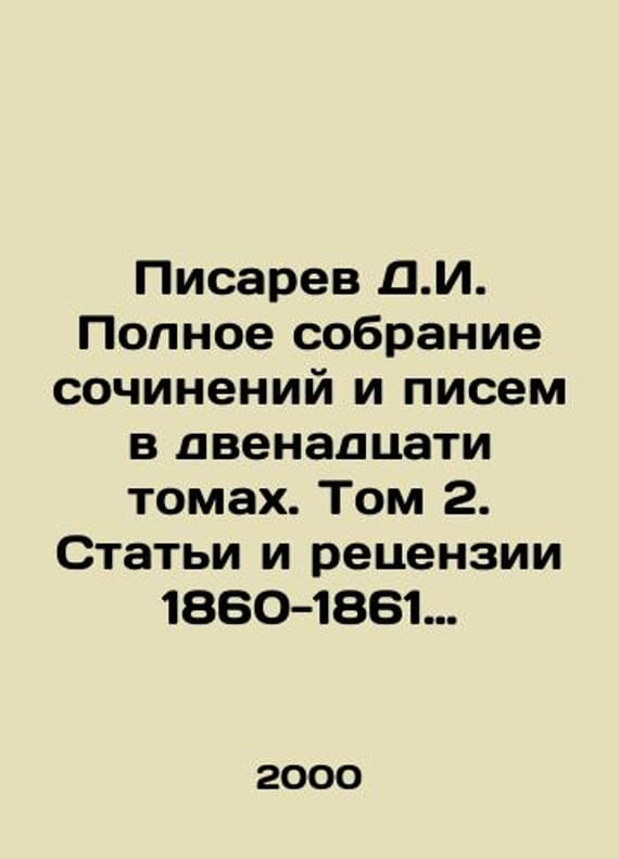 D.I. Pisarev Complete collection of essays and letters in twelve volumes. Volume 2. Articles and Reviews 1860-1861 (January-May). In Russian /Pisarev D.I. Polnoe sobranie sochineniy i pisem v dvenadtsati tomakh. Tom 2. Stati i retsenzii 1860-1861 (yanvar-may). Chief Editor F. F. Kuznetsov. Executive Editor of Volodin Volume A.I. Gorky Institute of World Literature, Russian Academy of Sciences. M. Science 2000. 486 p. We have thousands of titles and often several copies of each title may be available. Please feel free to contact us for a detailed description of the copies available. SKUalb6cc9dde92adf17fa.
