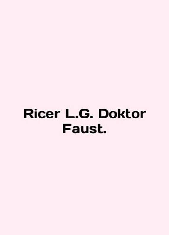 Ricer L.G. Doktor Faust. In English /Ricer L.G. Doktor Faust. Wien 1900-eg. 40c. We have thousands of titles and often several copies of each title may be available. Please feel free to contact us for a detailed description of the copies available. SKUalb6d0d0af20b9347e0.