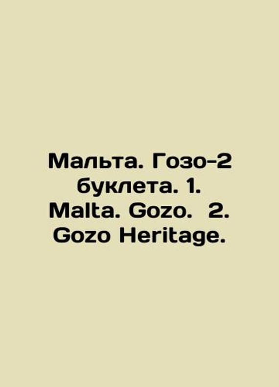 Malta. Gozo-2 booklet. 1. Malta. Gozo. 2. Gozo Heritage. In Russian /Malta. Gozo-2 bukleta. 1. Malta. Gozo. 2. Gozo Heritage. Malta. Gozo-2 booklet. 1. Malta. Gozo. 2. Gozo Heritage. We have thousands of titles and often several copies of each title may be available. Please feel free to contact us for a detailed description of the copies available. SKUalb6d1b8b43a00e3981.