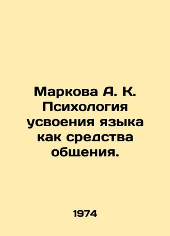 Markova A. K. Psychology of language acquisition as a means of communication. In Russian /Markova A. K. Psikhologiya usvoeniya yazyka kak sredstva obshcheniya. Moscow Publishing House of Pedagogy, 1974. 240 p. We have thousands of titles and often several copies of each title may be available. Please feel free to contact us for a detailed description of the copies available. SKUalb6d1e303c5f487937.