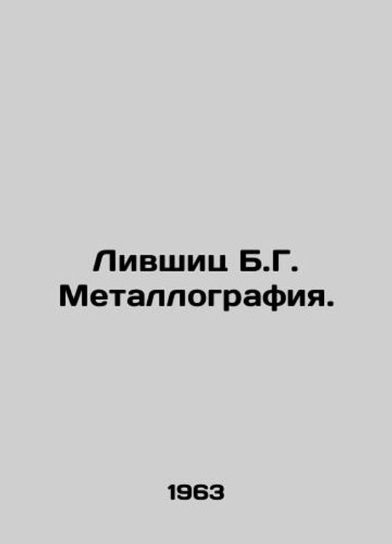 Livshits B.G. Metallography. In Russian /Livshits B.G. Metallografiya. Textbook for students of metallurgical higher education institutions. M. Metallurgizdat 1963. 422 s. We have thousands of titles and often several copies of each title may be available. Please feel free to contact us for a detailed description of the copies available. SKUalb6d4ac5cd0a7ab6ed.