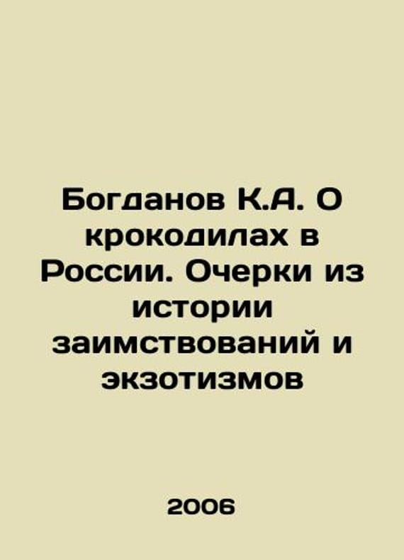 Bogdanov K.A. About crocodiles in Russia. Essays from the history of borrowing and exoticism In Russian /Bogdanov K.A. O krokodilakh v Rossii. Ocherki iz istorii zaimstvovaniy i ekzotizmov Series: The Science Library of Moscow: The New Literary Review 2006. We have thousands of titles and often several copies of each title may be available. Please feel free to contact us for a detailed description of the copies available. SKUalb6d765575be04e9f3.
