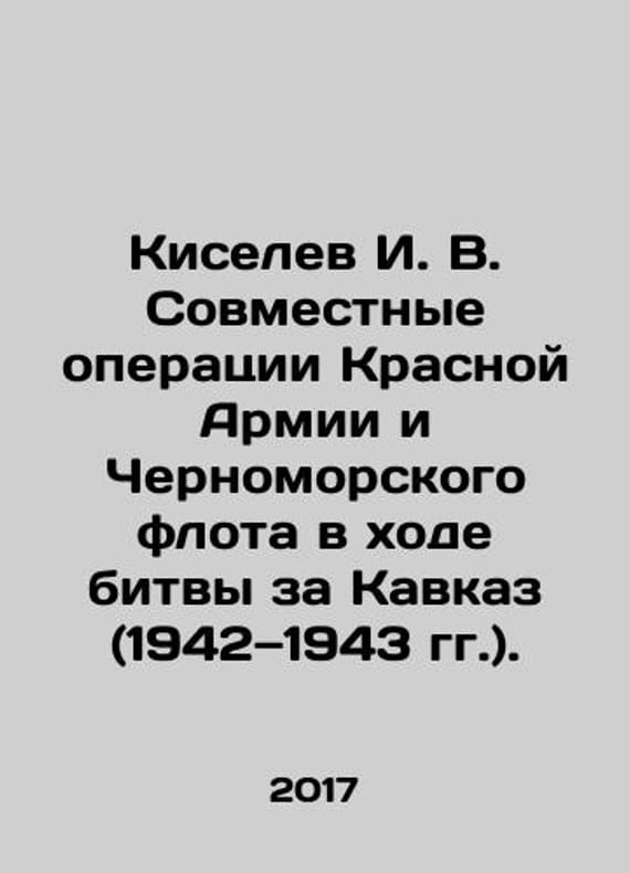 Kiselev I. V. Joint operations of the Red Army and the Black Sea Fleet during the Battle of the Caucasus (1942-1943). In Russian /Kiselev I. V. Sovmestnye operatsii Krasnoy Armii i Chernomorskogo flota v khode bitvy za Kavkaz (1942 1943 gg.). Monograph. Krasnodar: Krasnodar Higher Military Aviation School of Pilots, 2017. 220 p. We have thousands of titles and often several copies of each title may be available. Please feel free to contact us for a detailed description of the copies available. SKUalb6dd37ba80d14a24f.