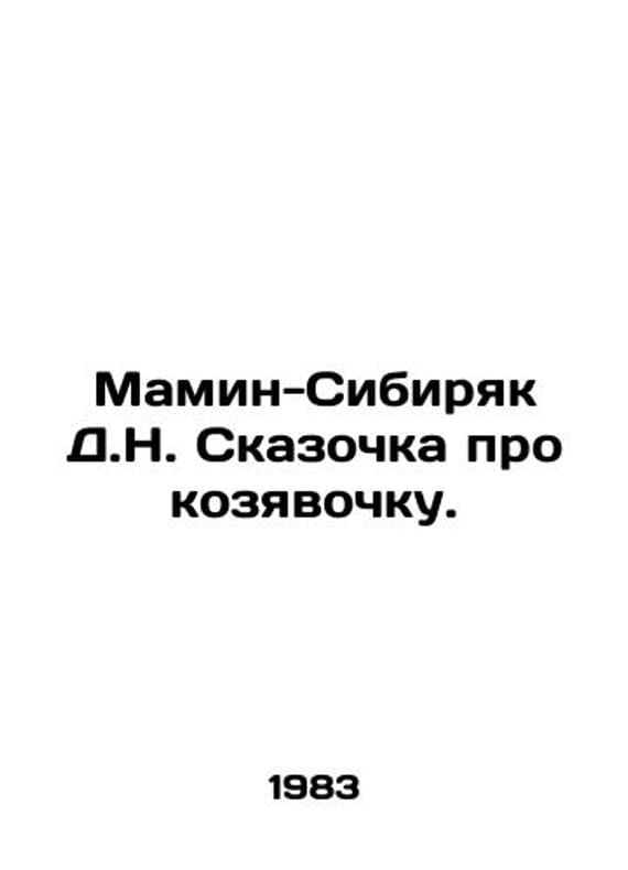 D.N. Sibiryaks Mamin-Sibiryak tale about a goat. In Russian /Mamin-Sibiryak D.N. Skazochka pro kozyavochku. M Childrens Literature 1983. We have thousands of titles and often several copies of each title may be available. Please feel free to contact us for a detailed description of the copies available. SKUalb6e37abfc0bdafa63.