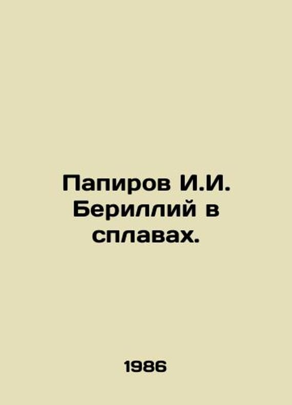 Papirov I.I. Beryllium in alloys. In Russian /Papirov I.I. Berilliy v splavakh. M. Energoatomizdat 1986. We have thousands of titles and often several copies of each title may be available. Please feel free to contact us for a detailed description of the copies available. SKUalb6e6dbf465f38e351.