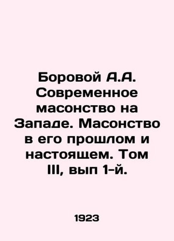 Borovoy A.A. Modern Freemasonry in the West. Freemasonry in its Past and Present. Volume III Issue 1. In Russian (ask us if in doubt)/Borovoy A.A. Sovremennoe masonstvo na Zapade. Masonstvo v ego proshlom i nastoyashchem. Tom III vyp 1-y. Short description: In Russian (ask us if in doubt).edited by S. P. Melgunov and N. P. Sidorov M. Zadrud 1923 55 p. We have thousands of titles and often several copies of each title may be available. Please feel free to contact us for a detailed description of the copies available. SKUalb6e73034340a46bce