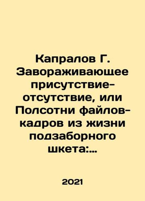 Corporal G. Fascinating presence or absence, or fifty file shots from the life of a pick-up rocket: memories. In Russian /Kapralov G. Zavorazhivayushchee prisutstvie-otsutstvie, ili Polsotni faylov-kadrov iz zhizni podzabornogo shketa: vospominaniya. M. DeLibri 2021. 446 p. We have thousands of titles and often several copies of each title may be available. Please feel free to contact us for a detailed description of the copies available. SKUalb6eb8a3a323e29f38.