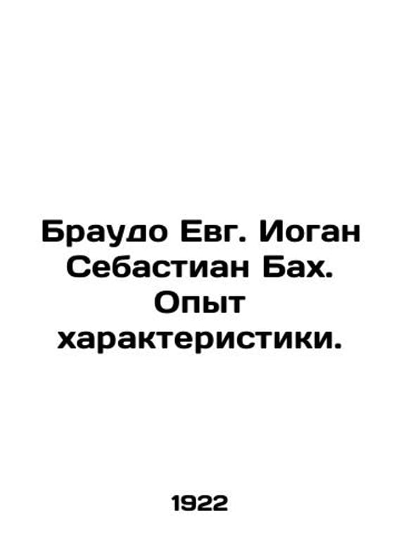 Braudo Evg. Johann Sebastian Bach. Experience of characterization. In Russian /Braudo Evg. Iogan Sebastian Bakh. Opyt kharakteristiki. Series: Experience of Characteristics. Petrograd Svetozar 1922. We have thousands of titles and often several copies of each title may be available. Please feel free to contact us for a detailed description of the copies available. SKUalb6ed6382e137a63c8.