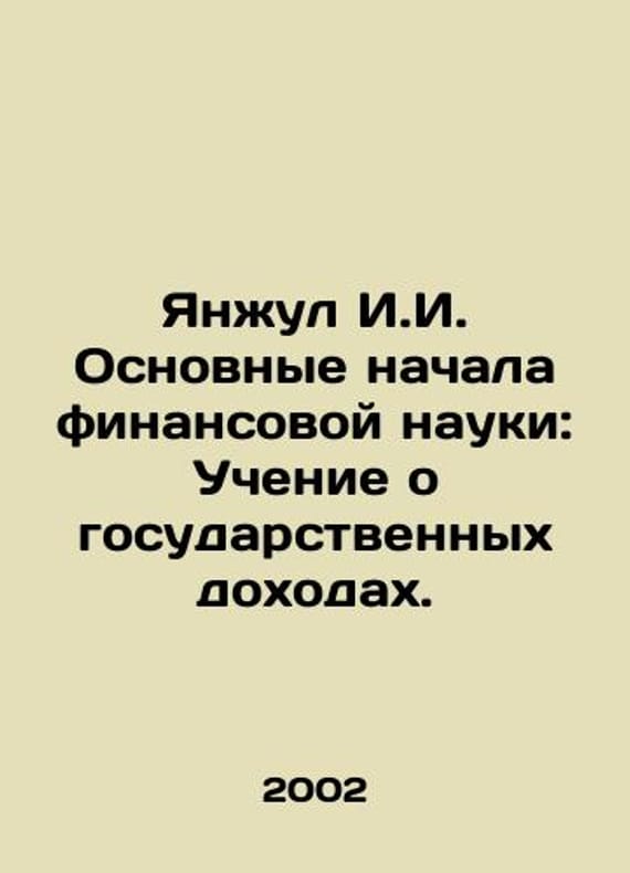 Yanjul I.I. Basic Beginnings of Financial Science: The Teaching of Public Revenues. In Russian /Yanzhul I.I. Osnovnye nachala finansovoy nauki: Uchenie o gosudarstvennykh dokhodakh. Series: Gold Pages of Financial Law of Russia. Volume 3, Moscow, Statute, 2002, 555c. We have thousands of titles and often several copies of each title may be available. Please feel free to contact us for a detailed description of the copies available. SKUalb6f10bbb45b34f72e.
