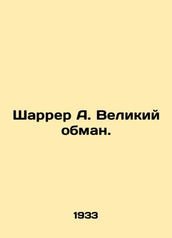 Sharrer A. The Great Deception. In Russian /Sharrer A. Velikiy obman. Translation from German by Evg. Tronovsky. 1933. 212 p. We have thousands of titles and often several copies of each title may be available. Please feel free to contact us for a detailed description of the copies available. SKUalb6f146d546eee46bc.
