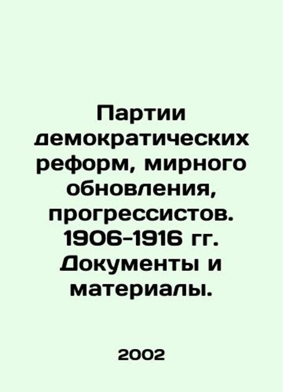 Parties of Democratic Reform, Peaceful Renewal, Progressives. 1906-1916 In Russian /Partii demokraticheskikh reform, mirnogo obnovleniya, progressistov. 1906-1916 gg. Dokumenty i materialy. Series: Political Parties in Russia. Late 19th-first third of the 20th century. Documentary Legacy. Novosibirsk, ROSSPEN, 2002, 528 p. We have thousands of titles and often several copies of each title may be available. Please feel free to contact us for a detailed description of the copies available. SKUalb6f6325618b14eb47.
