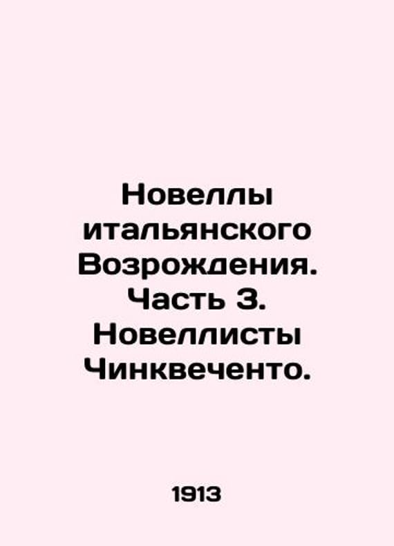 Italian Renaissance Novels. Part 3. Cinquecento Novelists. In Russian /Novelly italyanskogo Vozrozhdeniya. Chast 3. Novellisty Chinkvechento. The first novels appear together with the first trends of the new era - in the days of Dante and Francis of Assisi. The latter are glimpsed in the complex and motley fabric of historical, domestic, and psychological relations, which without a sharp change marked the transition from the way of life of the Renaissance Italian national culture to the way of life of the Baroque and European culture of the eighteenth century. More than art and poetry, the novel was the creation of the Renaissance, its native offspring. And it did not change so much in the phases of its 300-year existence. We have thousands of titles and often several copies of each title may be available. Please feel free to contact us for a detailed description of the copies available. SKUalb6f6a200b9a2ba605.