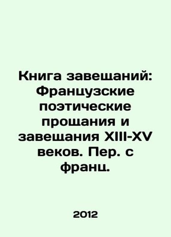 The Book of Wills: French Poetry Farewell and Testaments from the Thirteenth to Fifteenth Centuries In Russian /Kniga zaveshchaniy: Frantsuzskie poeticheskie proshchaniya i zaveshchaniya XIII XV vekov. Per. s frants. M. Aquarius 2012. We have thousands of titles and often several copies of each title may be available. Please feel free to contact us for a detailed description of the copies available. SKUalb6f71ae1344820b32.