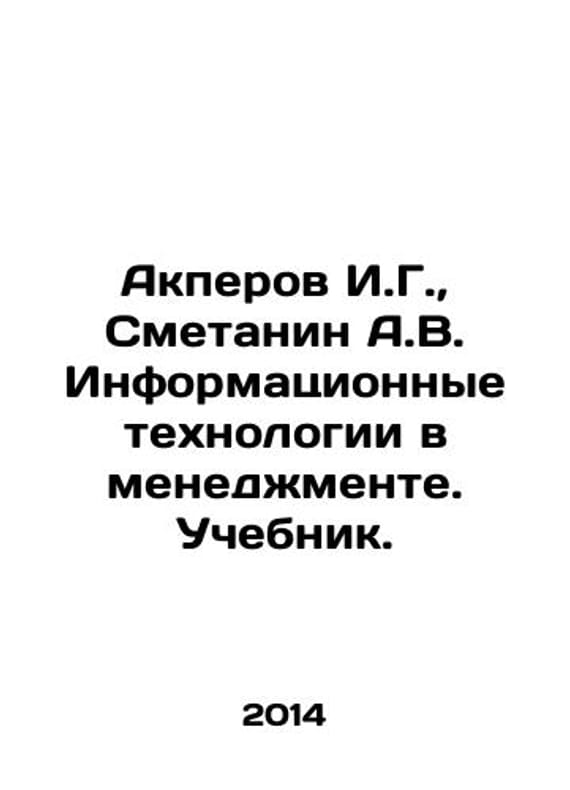 Akperov I.G., Smetanin A.V. Information technology in management. Textbook. In Russian /Akperov I.G., Smetanin A.V. Informatsionnye tekhnologii v menedzhmente. Uchebnik.M. Infra-M 2014.We have thousands of titles and often several copies of each title may be available. Please feel free to contact us for a detailed description of the copies available. SKUalb6f94e246599dde6b.