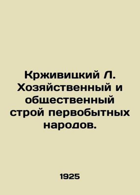 Krzyvitsky L. The economic and social system of primitive peoples. In Russian /Krzhivitskiy L. Khozyaystvennyy i obshchestvennyy stroy pervobytnykh narodov. M.-L. Gosizdat 1925. We have thousands of titles and often several copies of each title may be available. Please feel free to contact us for a detailed description of the copies available. SKUalb6faa538f07a2d30c.