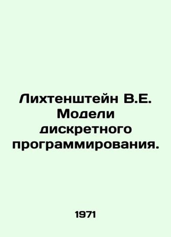 Liechtenstein V.E. Discrete programming models. In Russian /Likhtenshteyn V.E. Modeli diskretnogo programmirovaniya. M. Science 1971. We have thousands of titles and often several copies of each title may be available. Please feel free to contact us for a detailed description of the copies available. SKUalb6fb8ddc6791a4615.
