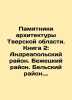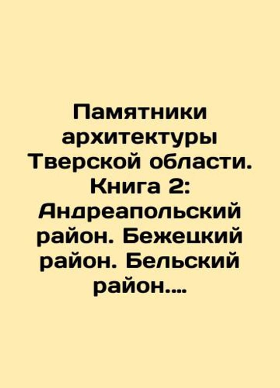 Monuments of architecture of Tver region. Book 2: Andreapol district. Bezhetsky district. Belsky district. Bologovsky district. Vesyegon district. Vyshnevolotsky district. In Russian /Pamyatniki arkhitektury Tverskoy oblasti. Kniga 2: Andreapolskiy rayon. Bezhetskiy rayon. Belskiy rayon. Bologovskiy rayon. Vesegonskiy rayon. Vyshnevolotskiy rayon. Catalogue. Compiled by G.K. Smirnov Tver, JSC Tver Principality 2002. 300s. We have thousands of titles and often several copies of each title may be available. Please feel free to contact us for a detailed description of the copies available. SKUalb6ff301bb3873b6a5.