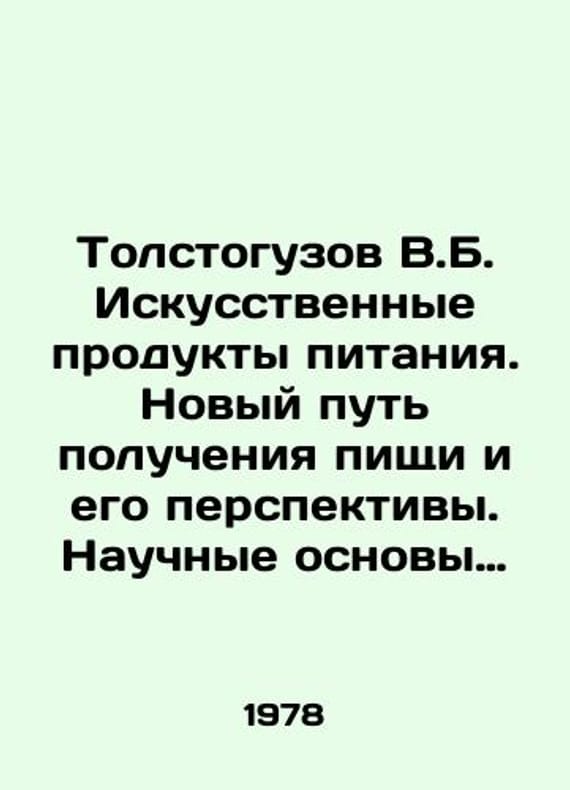 Tolstoguzov V.B. Artificial foodstuffs. A new way of obtaining food and its prospects. Scientific basis of production. In Russian (ask us if in doubt)/Tolstoguzov V.B. Iskusstvennye produkty pitaniya. Novyy put polucheniya pishchi i ego perspektivy. Nauchnye osnovy proizvodstva.. M. Science. 1978. 232c . SKUalb701b43d32dcf3517.