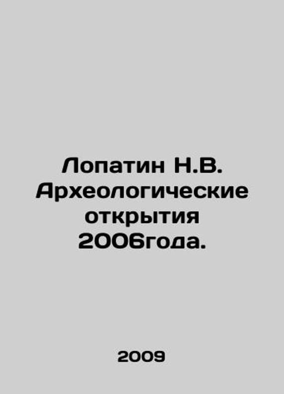 Lopatin N.V. Archaeological discoveries of 2006. In Russian /Lopatin N.V. Arkheologicheskie otkrytiya 2006goda. M. Science 2009. We have thousands of titles and often several copies of each title may be available. Please feel free to contact us for a detailed description of the copies available. SKUalb708192968274f1ff.