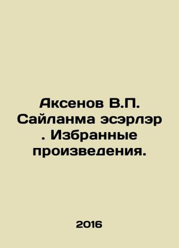 Aksenov V.P. Sailanma Eserlair. Selected works. In Russian /Aksenov V.P. Saylanma eserler. Izbrannye proizvedeniya. In Tatar. Kazan Tatar Book Publishing House, 2016 263 p. We have thousands of titles and often several copies of each title may be available. Please feel free to contact us for a detailed description of the copies available. SKUalb70a978cea2ec14c4.