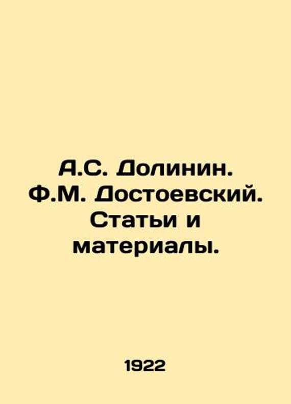A.S. Dolinin. F.M. Dostoevsky. Articles and materials. In Russian /A.S. Dolinin. F.M. Dostoevskiy. Stati i materialy. Edited by A.S. Dolinin. St. Petersburg. Central Cooperative Publishing House Thought. 1922. 516, 2 p. We have thousands of titles and often several copies of each title may be available. Please feel free to contact us for a detailed description of the copies available. SKUalb70b719539d1743aa.