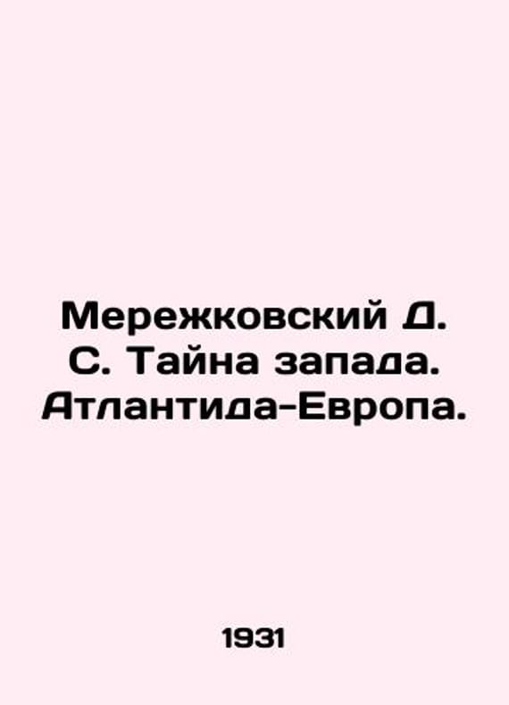 Merezhkovsky D. S. Mystery of the West. Atlantis-Europe. In Russian (ask us if in doubt)/Merezhkovskiy D. S. Tayna zapada. Atlantida-Evropa. 2 volumes. With a portrait of the writer. Circulation 1500 copies. Belgrade. Russian printing house. 1931. Total 532 XX p. Published on special paper 15x20.8 sm. SKUalb70c7128969584703.