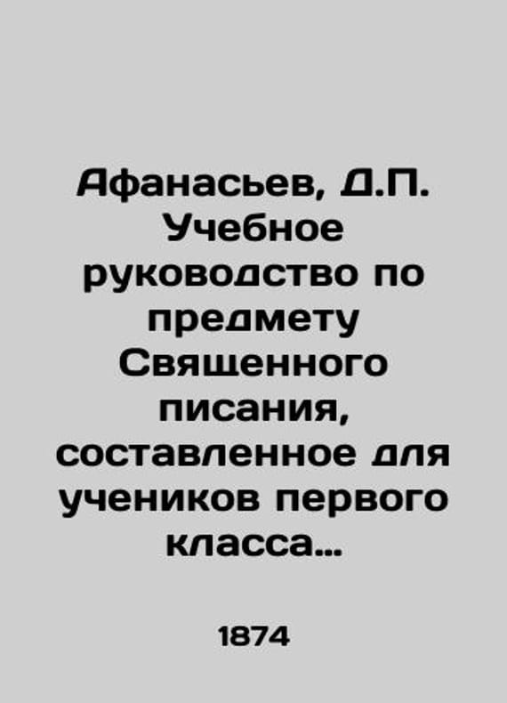 Afanasiev D.P. A textbook on the subject of the Holy Scriptures for first-grade seminary students: The Law of the Holy Scriptures of the Old Testament In Russian (ask us if in doubt)./Afanas'ev D.P. Uchebnoe rukovodstvo po predmetu Svyashchennogo pisaniya sostavlennoe dlya uchenikov pervogo klassa dukhovnykh seminariy: Knigi zakonopolozh. svyashchennogo pisaniya Vetkhogo Zaveta The book is a textbook on the discipline of the Holy Scriptures taught in seminaries. D.P. Afanasiev uses a historical and exegetical method of presenting material (title authorship place and time of writing plan and main content of books). The titles of Old Testament books are given in Greek and Hebrew a brief etymological analysis of selected biblical words and expressions as well as elements of a comparative analysis of the Masorettist text and the Septuagint. Dmitry Petrovich Afanasiev (1843-1891) is a teacher at the Caucasus Seminary. SKUalb711edcc534d9f038.
