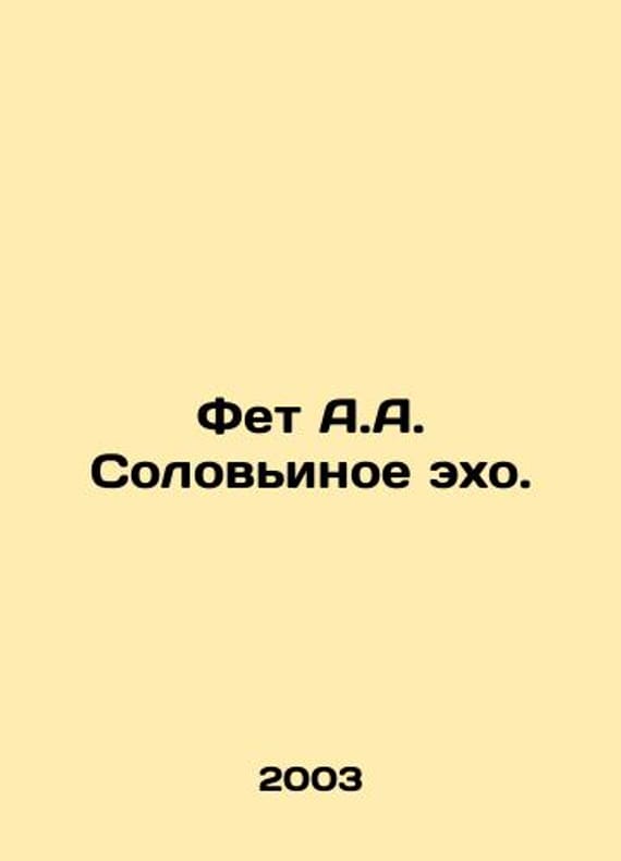 Fet A.A. Nightingale echo. In Russian /Fet A.A. Solovinoe ekho. School Library Series. M. Childrens Literature. 2003. We have thousands of titles and often several copies of each title may be available. Please feel free to contact us for a detailed description of the copies available. SKUalb712f0c211de9acfa.