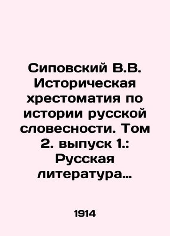 Sipovsky V.V. Historical Literature on the History of Russian Literature. Volume 2 Issue 1.: Russian Literature of the 18-19 Century.Sentimental and Popular Directions in the 18-19 Centuries. In Russian /Sipovskiy V.V. Istoricheskaya khrestomatiya po istorii russkoy slovesnosti. Tom 2. vypusk 1.: Russkaya literatura 18-19 vekov.Sentimentalnoe i narodnicheskoe napravlenie v 18-19 vekakh. SPB: 1914. We have thousands of titles and often several copies of each title may be available. Please feel free to contact us for a detailed description of the copies available. SKUalb7167346100360cce.