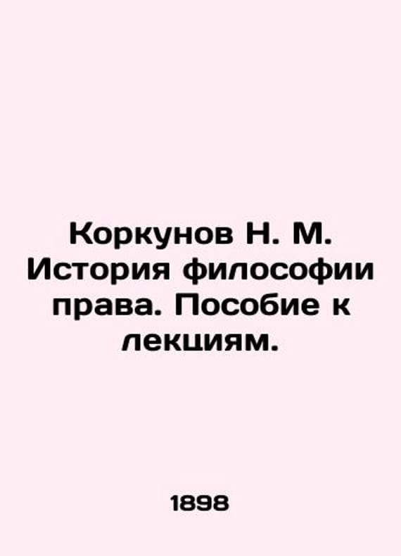 N. M. Korkunov History of the Philosophy of Law. Guide to Lectures. In Russian /Korkunov N. M. Istoriya filosofii prava. Posobie k lektsiyam. Series: Russian State Thought. Saint Petersburg: Science, 2009, 505 p. We have thousands of titles and often several copies of each title may be available. Please feel free to contact us for a detailed description of the copies available. SKUalb4883f2f19e66d6ff.