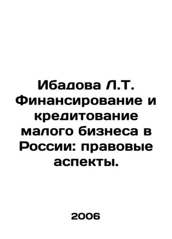 L.T. Ibadova Financing and Credit for Small Business in Russia: Legal Aspects. In Russian /Ibadova L.T. Finansirovanie i kreditovanie malogo biznesa v Rossii: pravovye aspekty. M. Wolters Kluver 2006 257 p. We have thousands of titles and often several copies of each title may be available. Please feel free to contact us for a detailed description of the copies available. SKUalb71a6e25c7b77dea2.