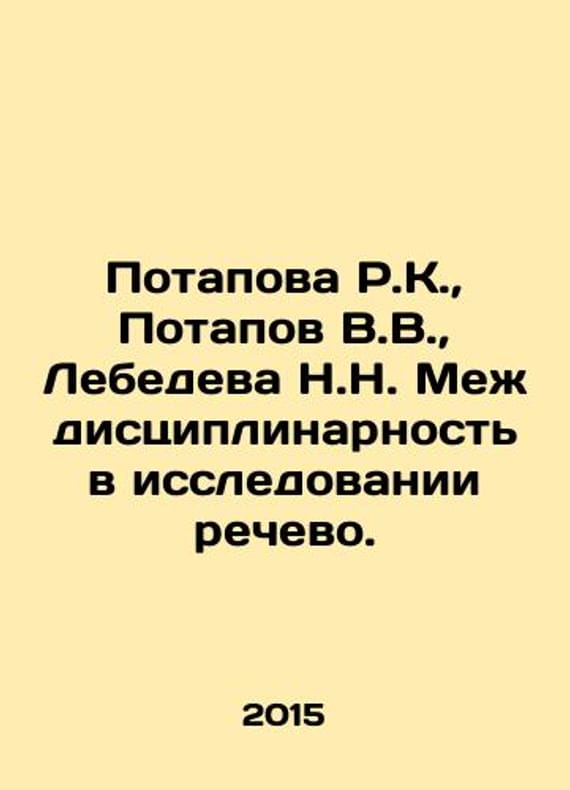 Potapova R.K., Potapov V.V., Lebedev N.N. Interdisciplinarity in speech research. In Russian /Potapova R.K., Potapov V.V., Lebedeva N.N. Mezhdistsiplinarnost v issledovanii rechevo. M Languages of Slavic Culture 2015. We have thousands of titles and often several copies of each title may be available. Please feel free to contact us for a detailed description of the copies available. SKUalb71cbf86f330f8b5f.