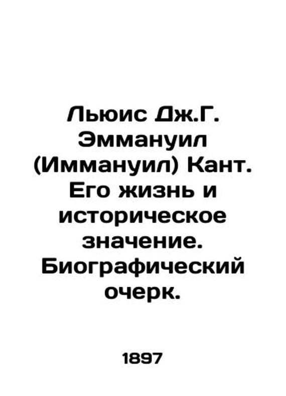 Lewis J. G. Emmanuel (Immanuel) Kant: His Life and History. A Biography. In Russian /Lyuis Dzh.G. Emmanuil (Immanuil) Kant. Ego zhizn i istoricheskoe znachenie. Biograficheskiy ocherk. Translated from English. St. Petersburg. Typography by A.Yakobson. 1897. We have thousands of titles and often several copies of each title may be available. Please feel free to contact us for a detailed description of the copies available. SKUalb71e8dbd287792ce1.