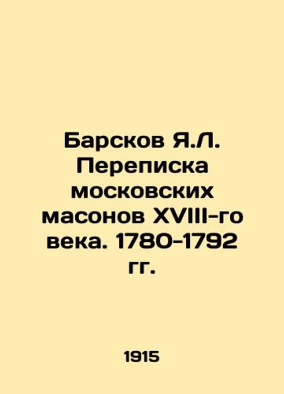 Barskov, Ya. Correspondence of Moscow Freemasons of the 18th century. 1780-1792./Barskov, Ya. Perepiska moskovskikh masonov XVIII-go veka. 1780-1792 gg. 1780-1792 Pg.: Publishing House of the Department of Russian Language and Literature of the Imperial Academy of Sciences, 1915. LXII, 2, 335, 7We have thousands of titles and often several copies of each title may be available. Please feel free to contact us for a detailed description of the copies available. SKUbd-7c26a1406fd3ac6b.