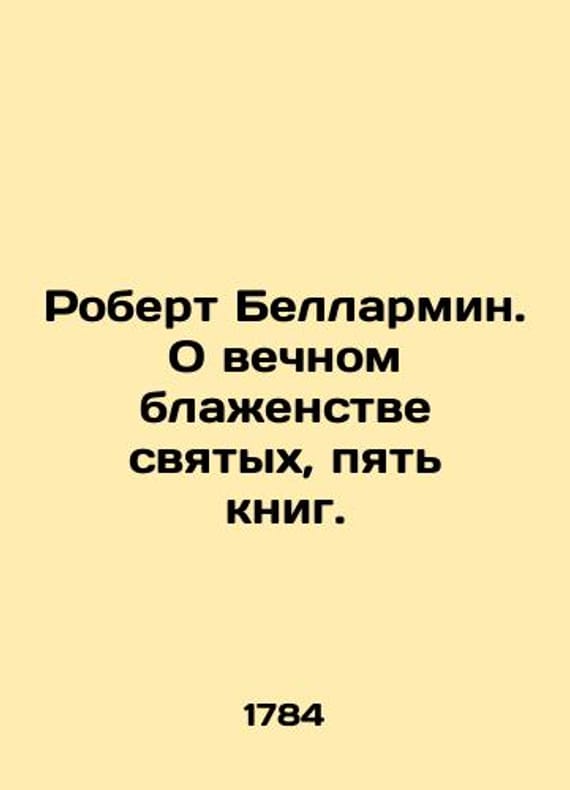 Robert Bellarmin: On the eternal bliss of saints, five books. In Russian /Robert Bellarmin. O vechnom blazhenstve svyatykh, pyat knig. In two parts. Translated from Latin by Nikita Suvorov. S-Pb. Dependence on the Moscow merchant Timofey Polezhaev. Printed at Shnor. 1784. 2, VIII, 4, 225 p., 4, 176 p., 17x11 sm. We have thousands of titles and often several copies of each title may be available. Please feel free to contact us for a detailed description of the copies available. SKUalb720a3cbd417f7ec0.