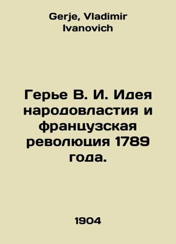 Guerrier V.I. The Idea of Popular Power and the French Revolution of 1789. In Russian /Gere V. I. Ideya narodovlastiya i frantsuzskaya revolyutsiya 1789 goda. Yakovlevs seal of 1904. 571s. We have thousands of titles and often several copies of each title may be available. Please feel free to contact us for a detailed description of the copies available. SKUalb722e463d52a4e962.