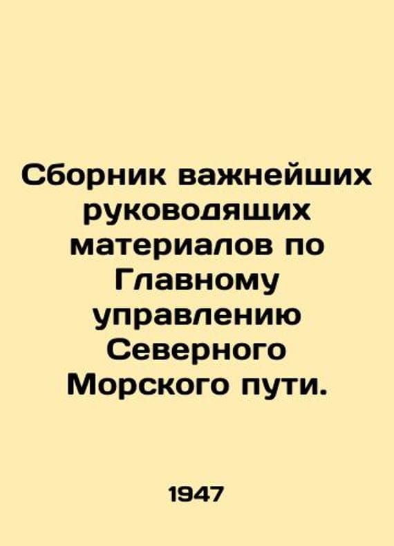 Compendium of essential guidance materials for the Northern Sea Route Authority. In Russian (ask us if in doubt)/Sbornik vazhneyshikh rukovodyashchikh materialov po Glavnomu upravleniyu Severnogo Morskogo puti. The Main Sea Route 1947. We have thousands of titles and often several copies of each title may be available. Please feel free to contact us for a detailed description of the copies available. SKUalb723065e1f723f02b