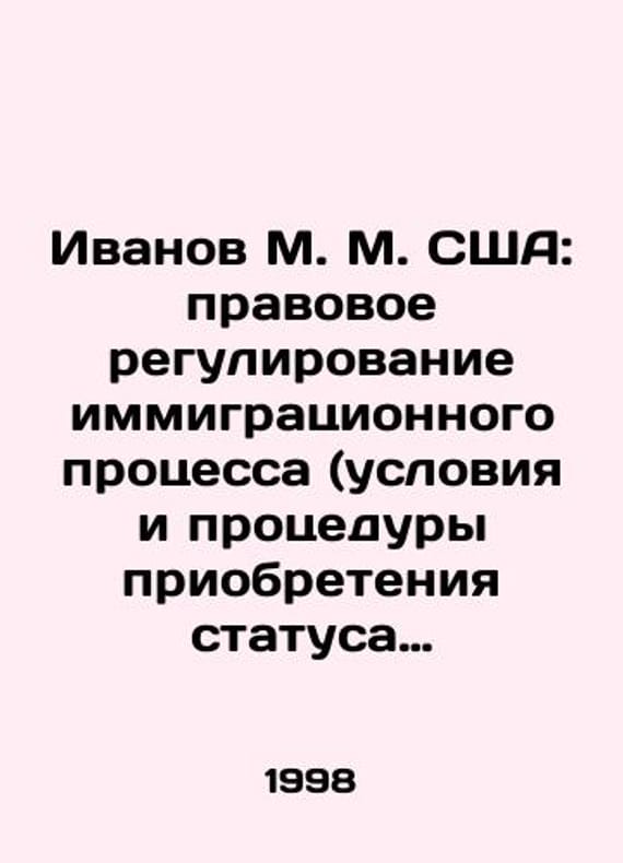 Ivanov M. M. USA: Legal Regulation of the Immigration Process (Conditions and Procedures for Acquisition of US Permanent Resident Status). In Russian /Ivanov M. M. SShA: pravovoe regulirovanie immigratsionnogo protsessa (usloviya i protsedury priobreteniya statusa postoyannogo zhitelya SShA). M. International Relations 1998. We have thousands of titles and often several copies of each title may be available. Please feel free to contact us for a detailed description of the copies available. SKUalb72722bed596de970.