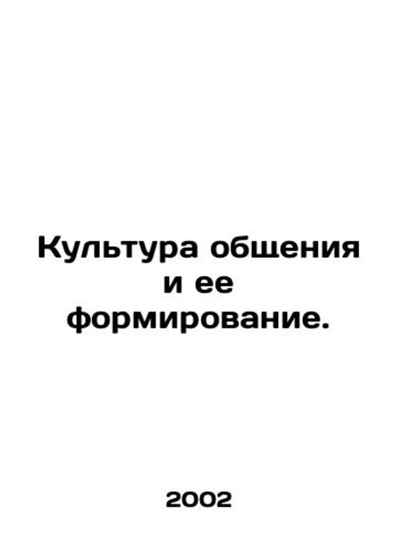 Culture of communication and its formation. In Russian /Kultura obshcheniya i ee formirovanie. Issue 9. Voronezh. VSU. 2002. 220 p. We have thousands of titles and often several copies of each title may be available. Please feel free to contact us for a detailed description of the copies available. SKUalb72eb0be858bd2bf7.